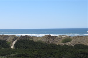 Out front, a wind-protected courtyard invites morning sun and evening chats. On the beach side, the deck offers a front-row seat to the rhythm of the waves. Though technically beachfront, the path to the sand, is around the corner (Heceta & Pond Street) and then turns into a whimsical hobbit trail through foliage and over a dune—about a quarter-mile stroll for the young and spry ๐ฟ.