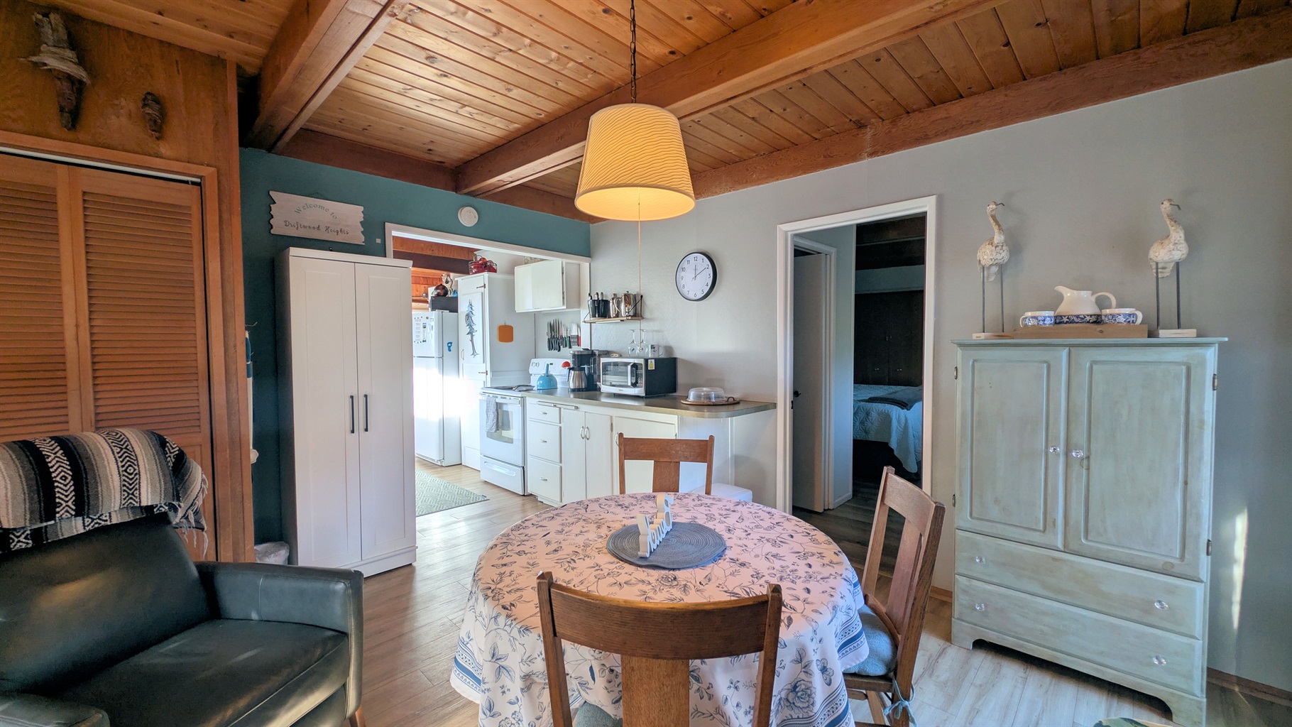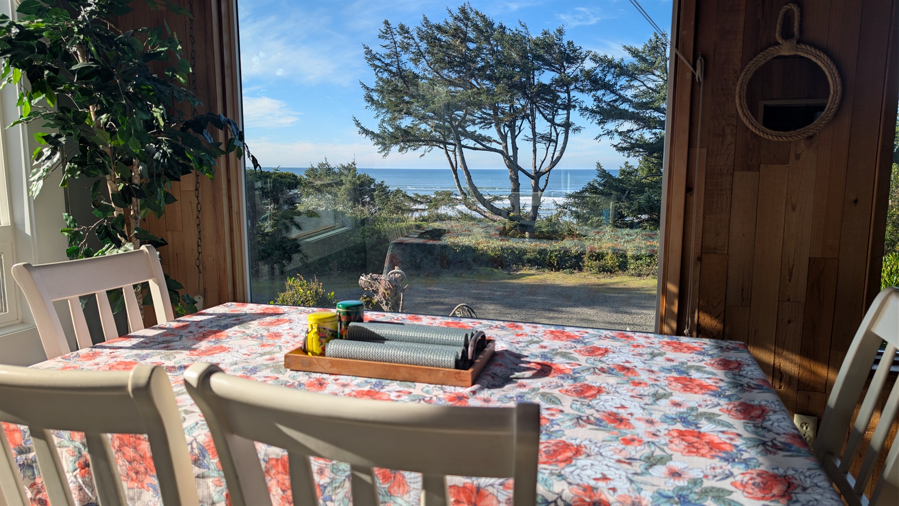 Purchased by new owners in 2019, Driftwood Heights continues to evolve with thoughtful updates each year — from stylish new furniture to decor that gracefully blends modern comfort with the home’s original soul. The open-concept living area is bathed in calming beach tones ๐พ, accented by natural wood and panoramic ocean vistas ๐ . Sink into plush seating — a curated mix of vintage charm and cozy touches — or gather around the dining table for laughter-filled meals ๐ท๐ฝ๏ธ.