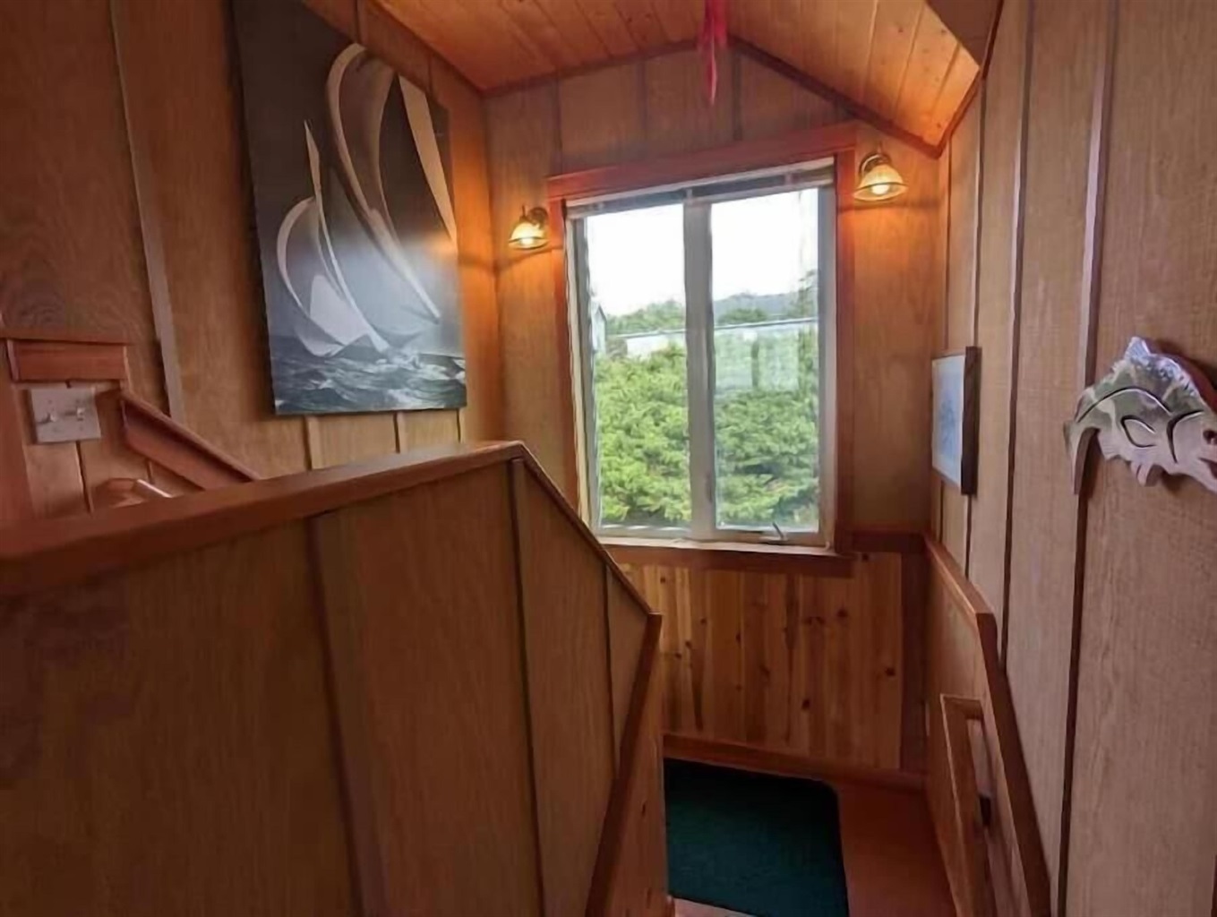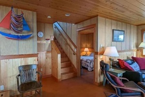 Ascending the picturesque staircase shown in the photo, you’ll find yourself welcomed into the heart of the home ๐๏ธ: the main living area. Here, the galley kitchen , dining room, and living room seamlessly come together, each space bathed in light and offering breathtaking vistas that stretch as far as the eye can see . This level also houses a cozy queen bedroom ๐๏ธ, a convenient bathroom ๐ฟ, and a well-equipped laundry room ๐งบ. Step out onto the back deck to soak up the golden rays of the morning sun, or retreat to the grand front porch—an ideal perch for marveling at the majestic dance of whales ๐, the graceful flight of pelicans, and the stately presence of bald eagles ๐ฆ , along with the chorus of countless other coastal birds .