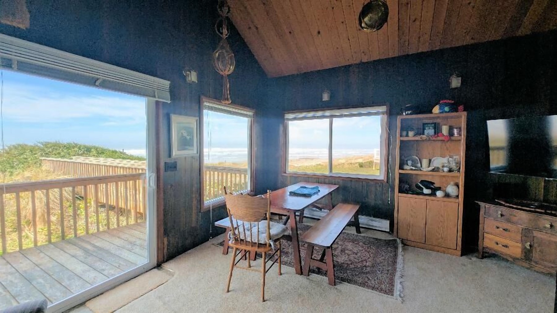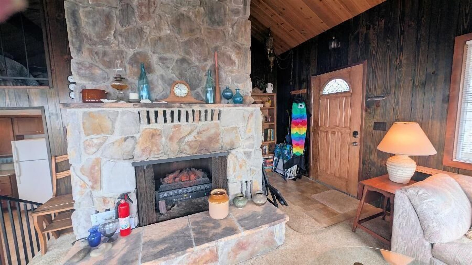 The heart of the home is a spacious living and dining area, where a massive stone fireplace ๐ฅ—now warmed by a mesmerizing electric log with multiple flame choices—sets the scene for cozy evenings. Picture yourself gazing out onto the ocean ๐