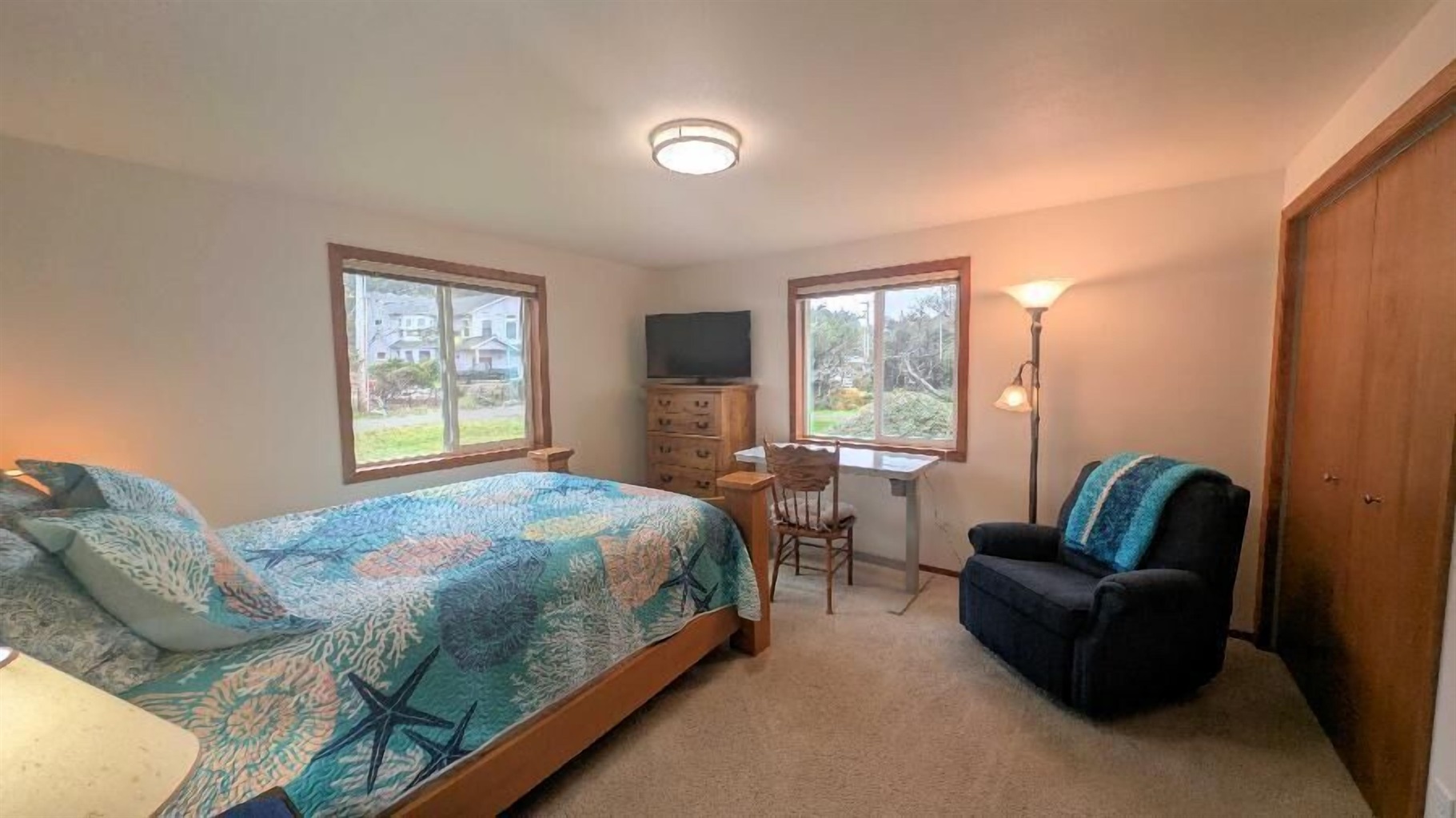 Each bedroom, adorned with a queen-sized bed and a TV , offers a peaceful retreat. One bedroom even boasts a desk—perfect for those who need to work on vacation ๐ป or enjoy some quiet time. Upstairs, a delightful loft awaits, complete with a queen bed and two twin beds ๐๐, providing ample space for a family gathering or a group of golfing buddies exploring the coast. A small desk in the loft offers a creative space ๐จ for the little ones to unleash their artistic talents.