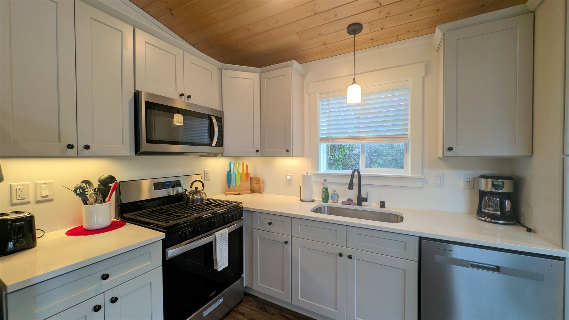 - ๐ณ Fully Equipped Kitchen: Gas Range, Refrigerator, Microwave, Dishwasher, Small Appliances, Pots, Pans, Dishes & Flatware