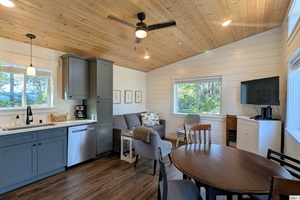 The bungalow is equipped with modern amenities to ensure a seamless stay, including free WiFi, a washer/dryer, and a gas grill for delightful outdoor cooking. Your four-legged companions are also welcome, with a community enclosure for small dogs ensuring their safety and enjoyment. Though private, the bungalow shares its idyllic property with another bungalow, adding to the sense of a secluded yet inviting retreat.