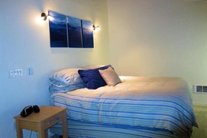 - Wood-burning stove, 32" TV, and two overstuffed chairs that convert to twin beds