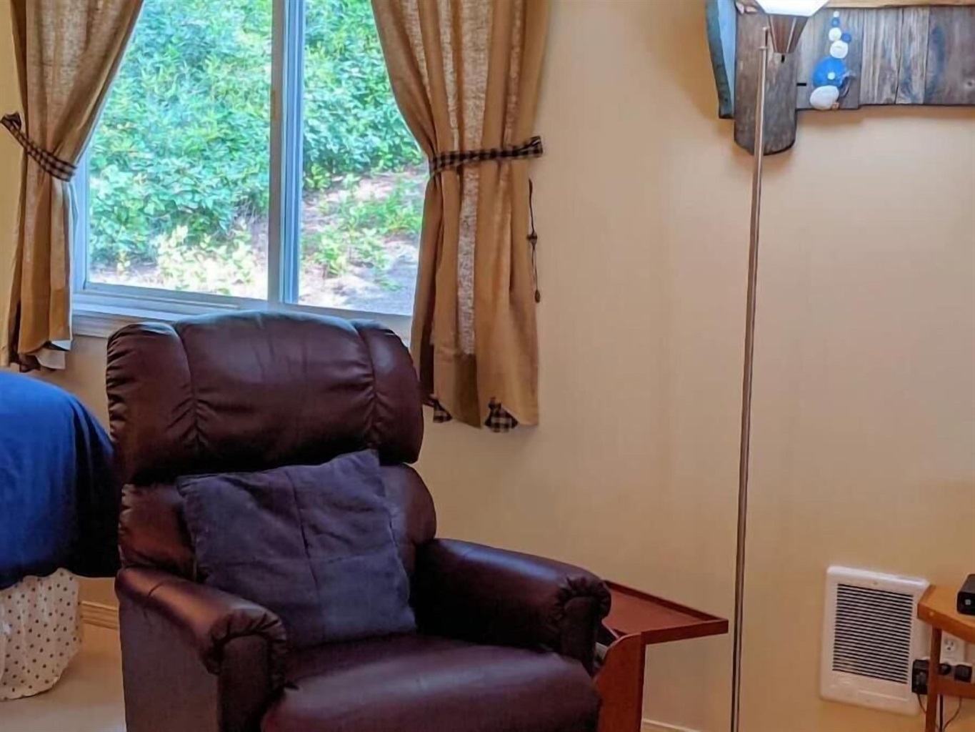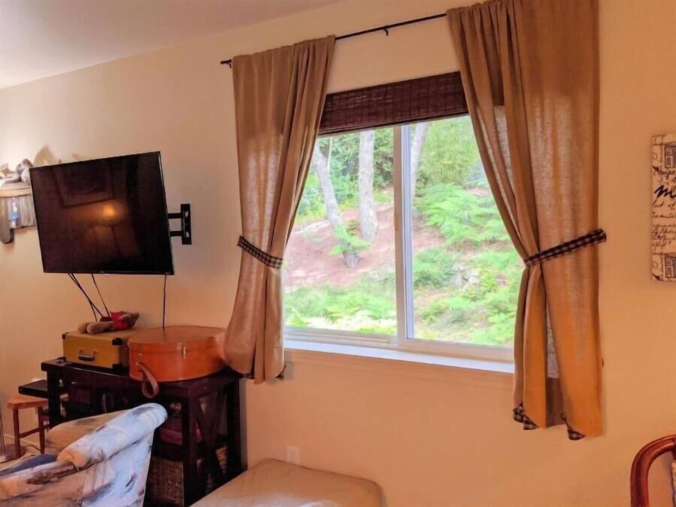 - Wall-mounted 40" Roku TV on a swivel arm—watch from anywhere