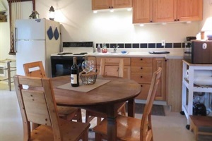 The kitchen is fully equipped for cooking and snacking: