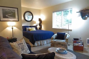 This is a single-room studio with a cozy alcove for the queen bed, lots of windows, and a bright, airy feel โ๏ธ.